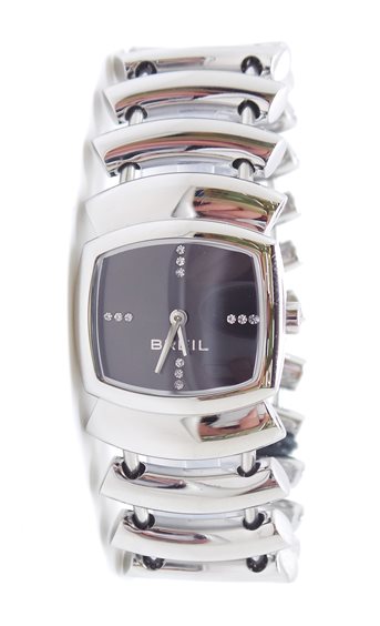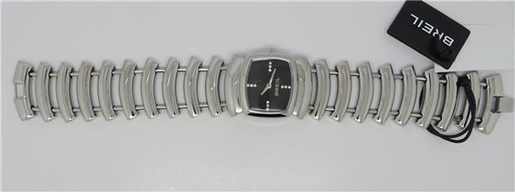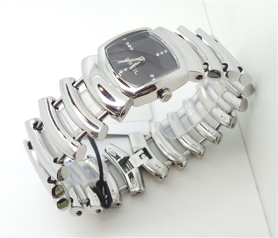 Orologio solo tempo donna con cassa in acciaio diametro 26mm, quadrante nero con strass . Vetro minerale. W.R. 5 atm. Bracciale scheletrato in acciaio lucido.Chiusura a gioiello.