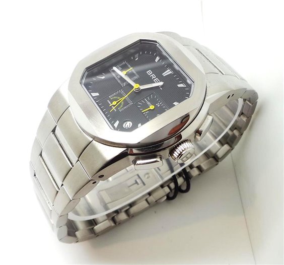 * Marca: Breil * Nome: Step • Movimento: Cronografo al Quarzo • Cassa: Acciaio lucido • Dimensione Cassa: 41 mm • Colore del quadrante: Nero • Vetro: Minerale • Materiale Cinturino: Acciaio lucido con finiture satinate • Chiusura: Deployante con pulsante di sicurezza • Water resistant: 10 atm • Confezione: Originale Breil • Garanzia: Ufficiale 2 anni Breil