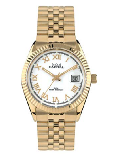Movimento al Quarzo con Data Cassa e Bracciale in Acciaio e Acciaio Laminato - Corona e Fondo a Vite Impermeabilità: 5 ATM - Quadranti Versione Laminata: Bianco Romani e Dorato - Cassa ø 36 mm