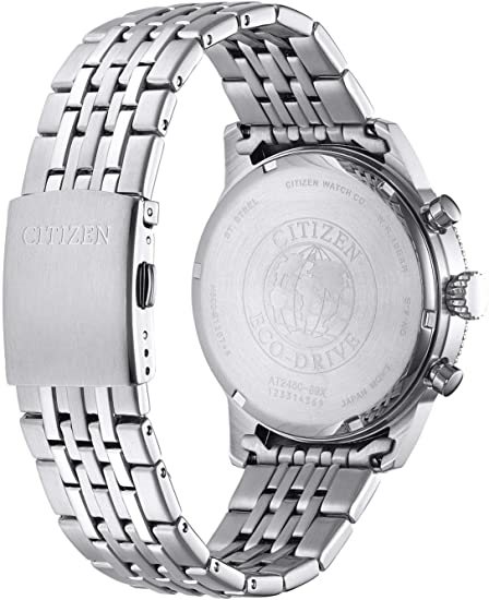 AT2460‑89X – Orologio cronografo solare in acciaio da 43 mm con quadrante verde e bracciale integrato Orologio sportivo-elegante con cassa in acciaio da 43 mm e quadrante verde profondo, arricchito da tre contatori, datario a ore 4, scala tachimetrica e indicatore 12/24h. Il movimento solare assicura fino a 150 giorni di autonomia con piena carica. Dotato di vetro minerale leggermente curvato, lancette e indici luminescenti per una leggibilità ottimale. Il bracciale in acciaio è completato da una chiusura deployante a pulsanti. Impermeabile fino a 10 ATM, è perfetto per l’uso quotidiano e il tempo libero. Diametro cassa: 43 mm Movimento: Solare (autonomia 150 giorni) Funzioni: Cronografo 1/5 sec, data, tachimetro, formato 12/24h, indicatore di carica Vetro: Minerale curvato Bracciale: Acciaio Chiusura: Deployante con pulsanti Resistenza all’acqua: 10 ATM Genere: Uomo Stile: Sportivo-elegante Un cronografo affidabile e versatile, pensato per chi cerca funzionalità e stile in ogni occasione.