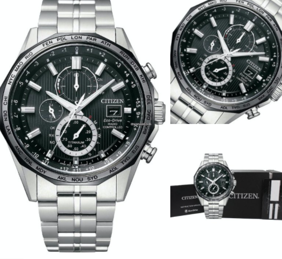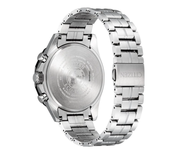 Caratteristiche: Movimento Eco Drive a carica luce con indicatore livello di carica sul quadrante; Funzione Cronografo; Radiocontrollato a 5 canali ricezione USA, Europa, Giappone, Cina; World Time con 26 città del mondo; Calendario perpetuo; Impermeabilità fino a 10 ATM; Cassa dal diametro di 44 mm realizzata in Super Titanio con finitura in Super Titanio; Cinturino in Super Titanio; Quadrante analogico di colore nero; Vetro Zaffiro; Peso 91,00 gr.