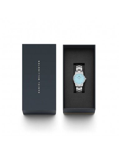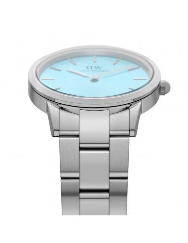 Orologio da donna della collezione Iconic Link, con movimento al quarzo e funzioni di solo tempo. Cassa realizzata in acciaio inox dal diametro di 28 mm e spessore di 8 mm. Quadrante azzurro con indici a bastoni e logo nella parte alta. Cinturino in acciaio anallergico largo 14 mm; chiusura deployante con pulsanti. Resistente all'acqua fino a 30 metri di profondità.