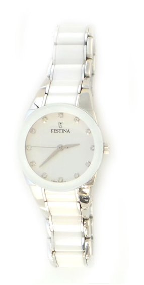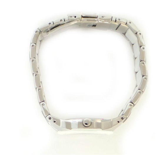 Orologio donna solo tempo, cassa in acciaio con cinturino in acciaio e ceramica higt-tech bianca , movimento al quarzo MGL30 , vetro minerale, water resistant 5 ATM, quadrante bianco con zirconi bianchi sugli indici, misura diametro 30mm , fondello a pressione , vetro minerale con lunetta bianca , cinturino regolabile , chiusura con pulsanti.