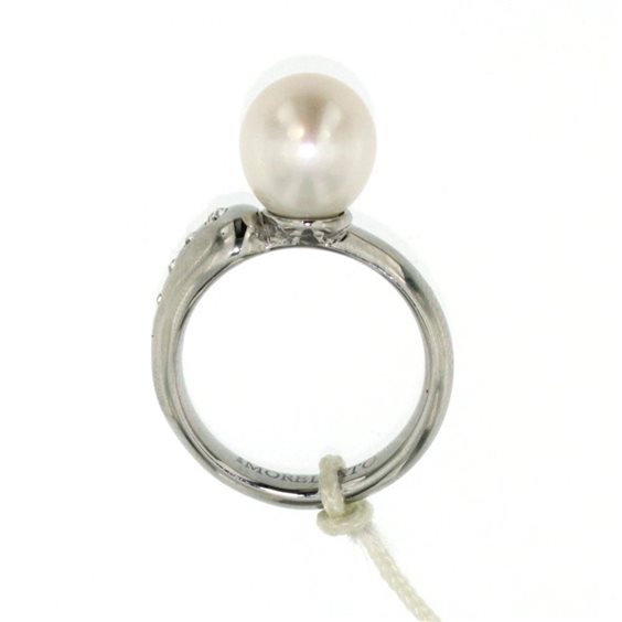 ANELLO MORELLATO COLLEZIONE 'MAREE' IN ACCIAIO CON PERLA DIAMETRO 10 MM COLTIVATA DI COLORE BIANCA E CRISTALLI  ATTORNO.