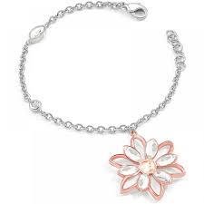 Bracciale donna in acciaio 316L , con catena a lavorazione rolo , pendente a forma di fiore in PVD oro rosa di diametro mm 30 petali in cristalli bianchi , misura tot cm19 con possibilita' di regolazione. Immagine indicativa , la confezione può variare in forma e colore.