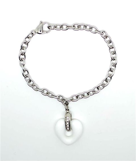 Bracciale in acciaio con cuore in ceramica e zirconi