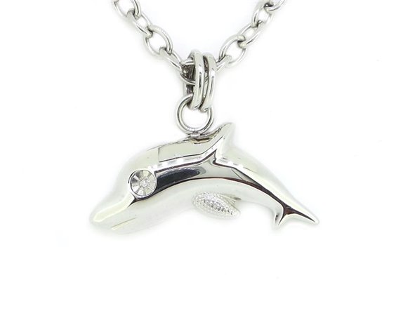 COLLANA ACCIAIO CON DELFINO E ZIRCONE