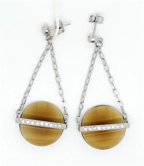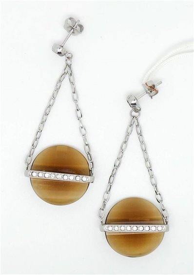 Orecchini in acciaio, zirconi, diamante naturale e cristallo fumé.