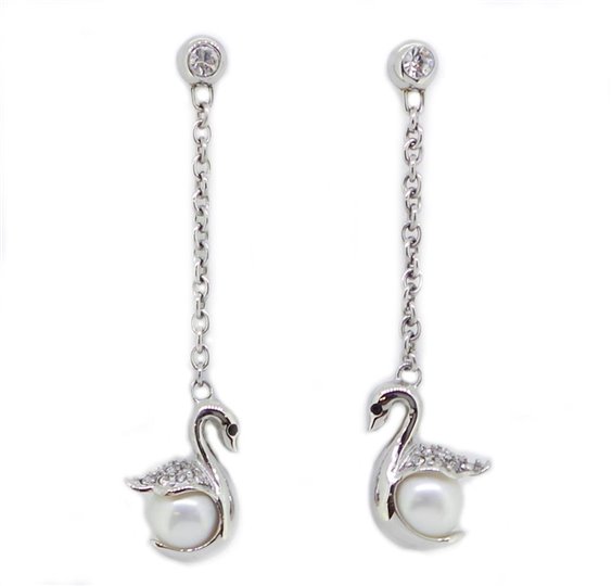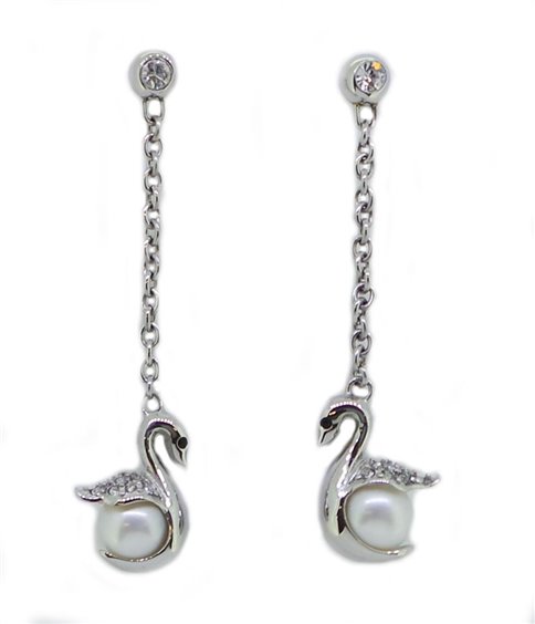 MORELLATO orecchini da donna collezione ANIMALIA cod.SKP20, in acciaio con pendenti a forma di cigno in acciaio,cristalli bianchi, perle coltivate, chiusura a farfalla.