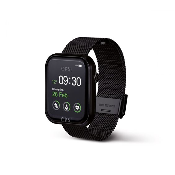 Smartwatch con cassa in Alluminio e ABS e bracciale maglia Milano in acciaio. Dimensioni cassa 44x37x13 mm. Display 1.83” Color full touch. Circonferenza interna del cinturino: da 180 mm a 140 mm. Chiusura a scorrimento in acciaio. Caratteristiche tecniche: Distanza di comunicazione: circa 10 metri CPU: realtek8762dk Waterproof: IP67 Versione Bluetooth: BT 5.1 Batteria: 230 mAh Li-polymer Sistemi compatibili: Android 5.0 o versioni superiori, IOS 9.0 o versioni superiori Funzioni: Chiamata e notifica. Pedometro, Wrist sense, Calorie, Distanza, Cronometro, Freq. Cardiaca, Pressione sanguigna, Ossigenazione, Timer, Sleep monitor, Sveglia, Sedentary reminder, Sport, Avviso bere, Music remote contol, Meteo, Scatto, Ricerca smartphone, Sfondo personalizzabile.