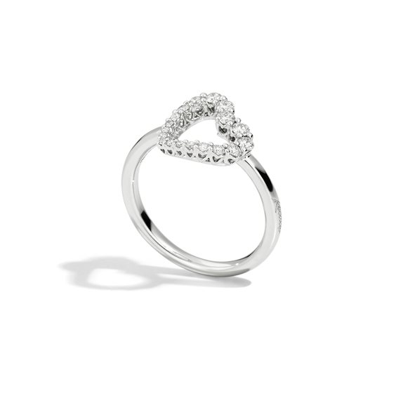 Anello forma a cuore in oro bianco 18 kt e diamanti taglio brillante.