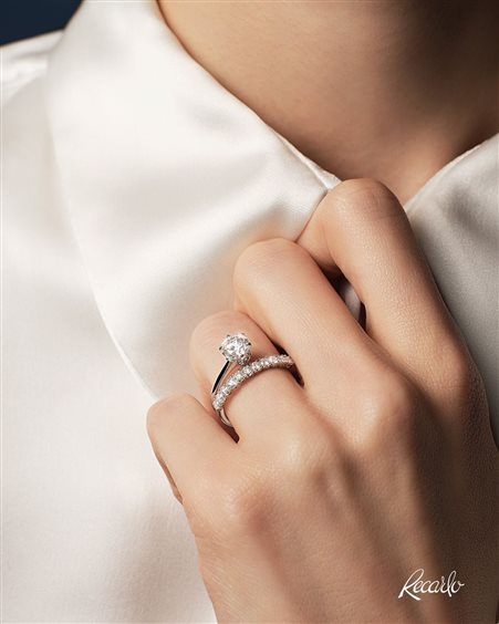 Anello solitario Recarlo Anniversary Six Line a sei punte in oro bianco 18 kt e diamanti naturale SI - F color