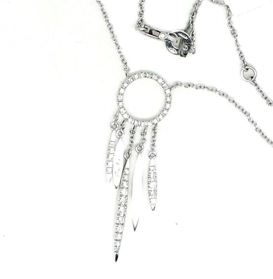 collana rolo' in oro bianco 750% (18ct) rappresentante il simbolo indiano dell'infinito impreziosito da diamanti. Peso gr 7.5/ lunghezza cm 45 regolabile a 40 grazie ad anello inserito nella catena e particolare del brillante incassato nella chiusura. diamanti taglio brillante ct 0.45 colore H purezza IF Ogni gioiello Salvini è accompagnato da assicurazione gratuita contro scippo e rapina per 3 anni.