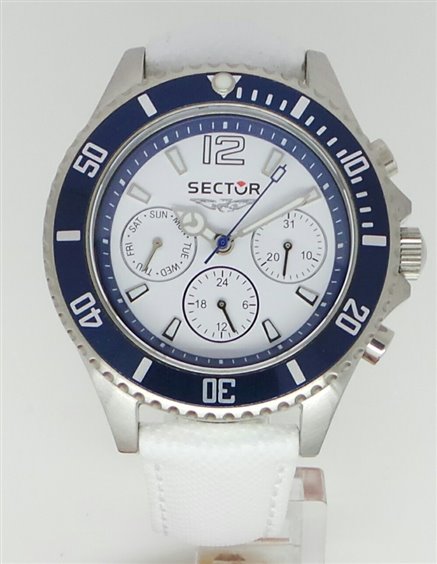 Sector: pura tecnologia e design italiano, dedicato a chi ama mettersi alla prova. Orologio della linea 230, con cassa in acciaio, cinturino in pelle, fondello a vite e ghiera girevole unidirezionale. Calendario con indicazione giorno della settimana. Peso di gr.67.70. Scatola e garanzia ufficiali.