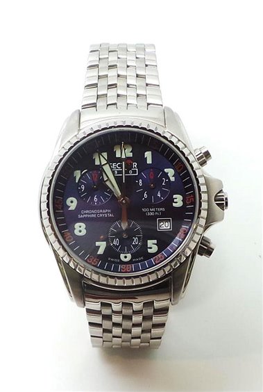 Cassa in acciaio 37 mm, bracciale in acciaio, movimento al quarzo con cronografo, vetro zaffiro, impermeabilità 100 m