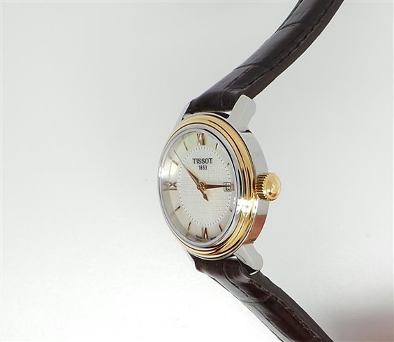 Nuovo classico dell'ampia scelta TISSOT, eleganza e sobrietà espressi attraverso le linee essenziali e l' attenzione al dettaglio. Esiste anche in coppia nella versione maschile. Cassa in acciaio anallergico e lunetta con trattamento PVD diam. mm.29 peso gr.35 Swiss made, due anni garanzia ufficiale.