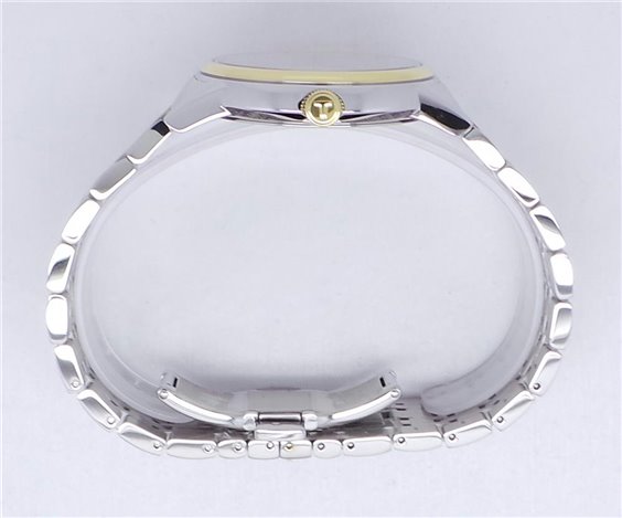 Orologio classico , senza tempo per ogni occasione in versione bicolore . Cassa in acciaio 316L e trattamento PVD cosi come il bracciale dotato di chiusura a farfalla . Vetro zaffiro antigraffio , impermeabilità 30 m . Diametro 40mm. Spessore 8,35 mm. Swiss made .